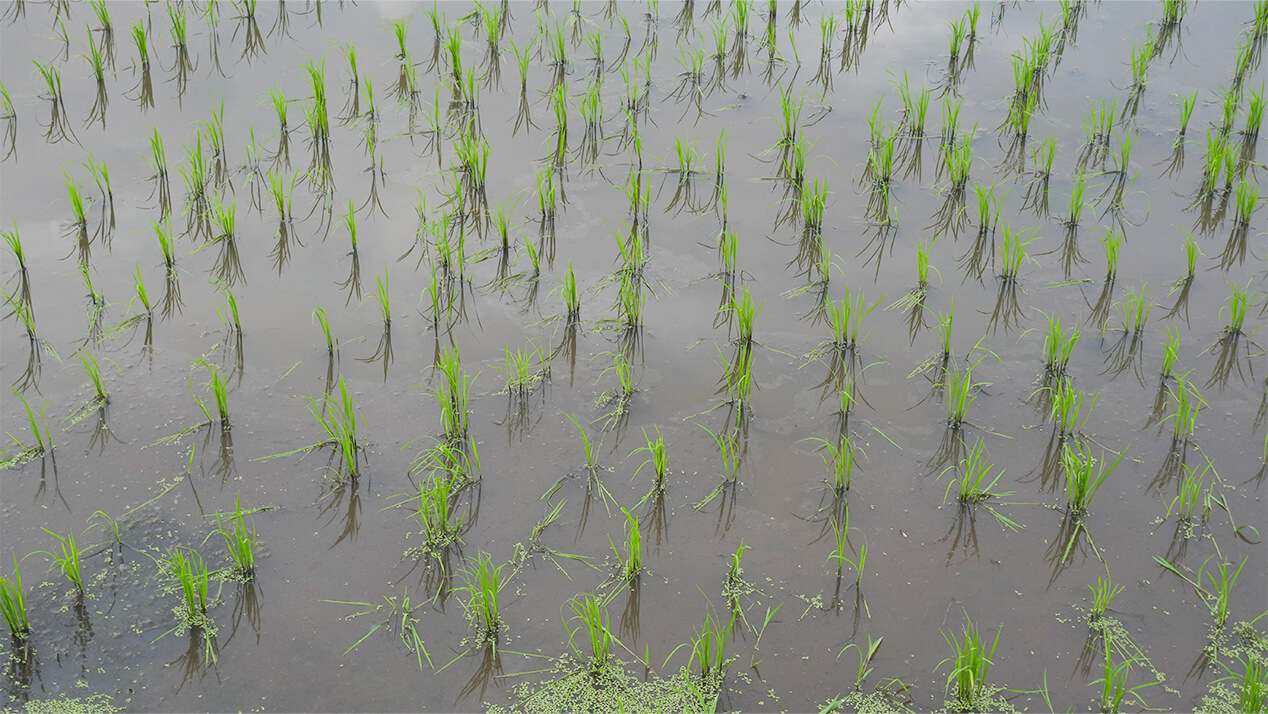 光の強さと、若い稲の瑞々しさ。まるで大地が目覚めるような季節の躍動を、足元から感じ取ることができるでしょう。