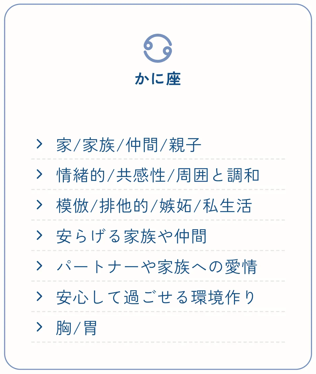 かに座は「安心」「家庭」「感情のつながり」「内側のケア」などを司るサイン。