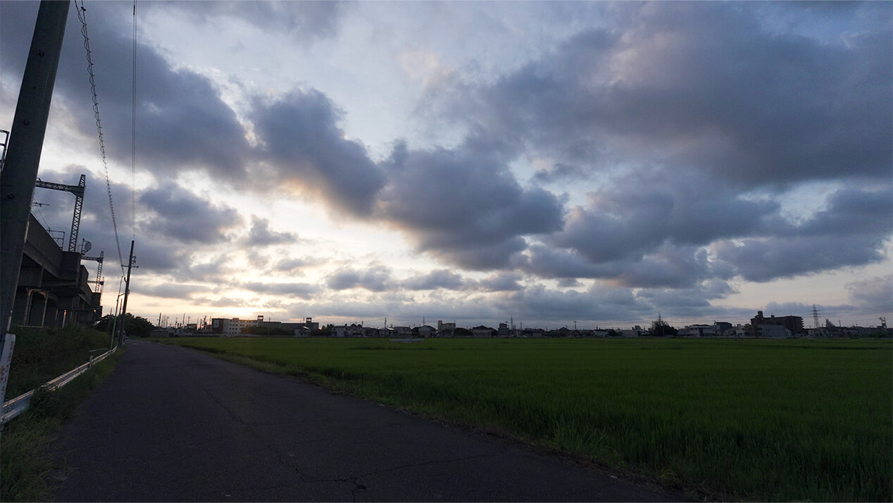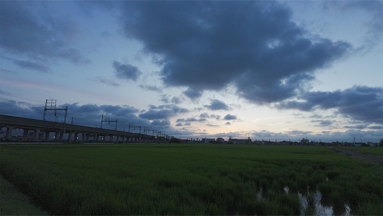 そして目を見張ったのは稲の成長でした。腰の高さまで伸びた稲は、先端がうっすら色づきはじめているような、黄金色の季節を予感させます。植物の成長の速さと力強さには、いつも驚かされます。ほんの数週間で風景が大きく変わり、そのたびに自然の営みに心が動かされます。稲を眺めながら、「私の季節もまた、静かに移ろっているのだ」と感じます。