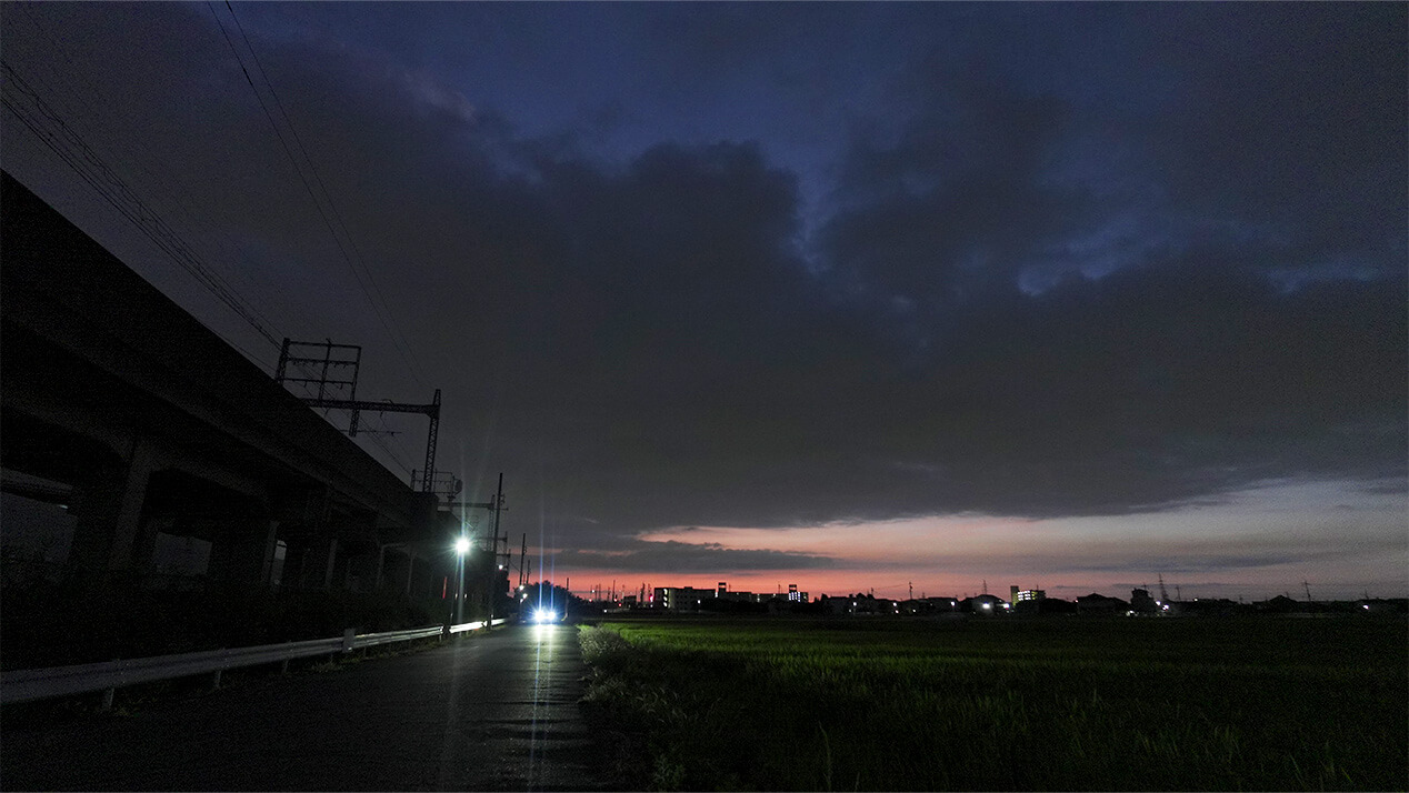 耳を澄ませば、草むらからは鈴虫やコオロギの声が重なり合い、夜明け前の景色に秋の気配を添えていました。