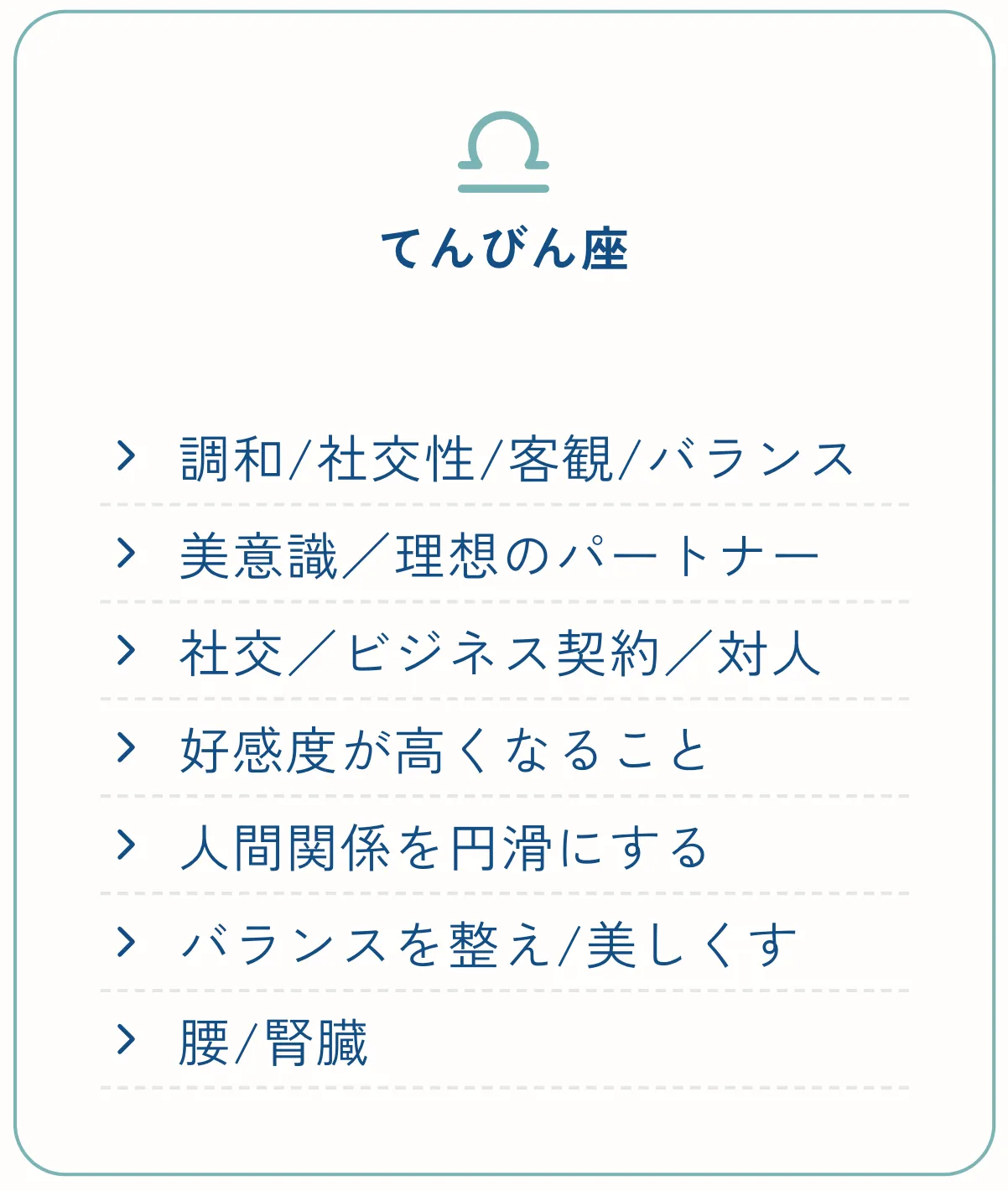 てんびん座は「バランス」「調和」「対話」「美意識」を象徴するサイン。