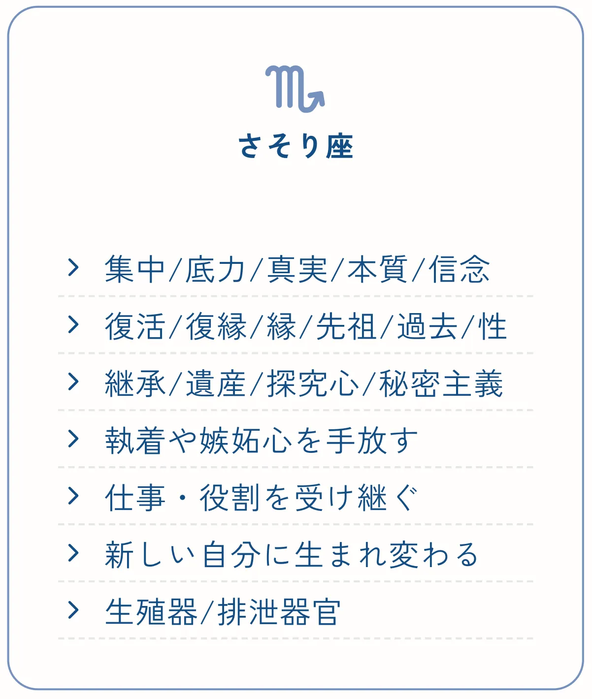さそり座は「深い結びつき」「信頼」「変容」「本音と本質」を象徴するサイン。