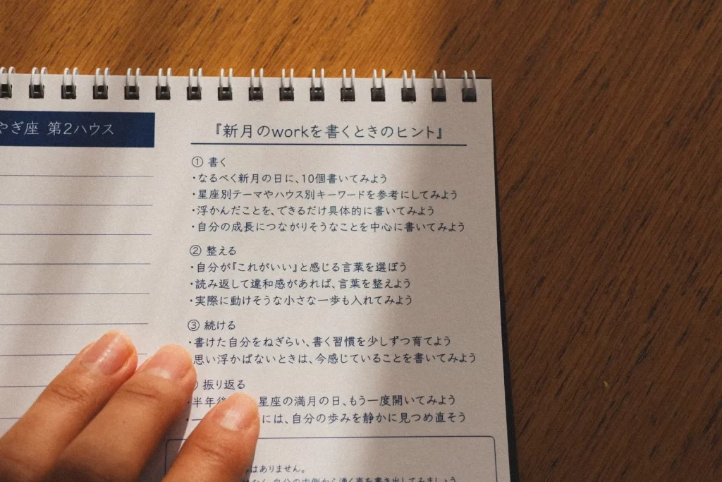 新月の日に “天体が示すテーマ” を手がかりに、今の自分の想いを書き出していくことで、自分の価値観がはっきりしていきます。