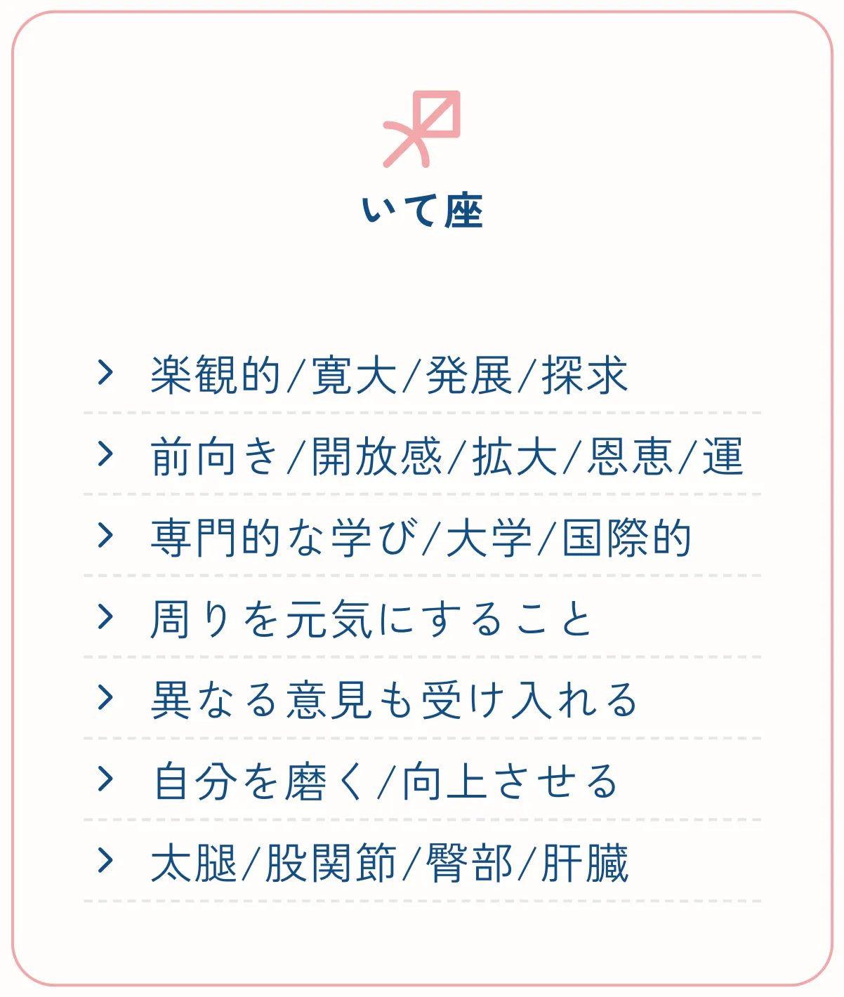 いて座は「探究心」「理想」「拡大」「信念」を象徴するサイン。
